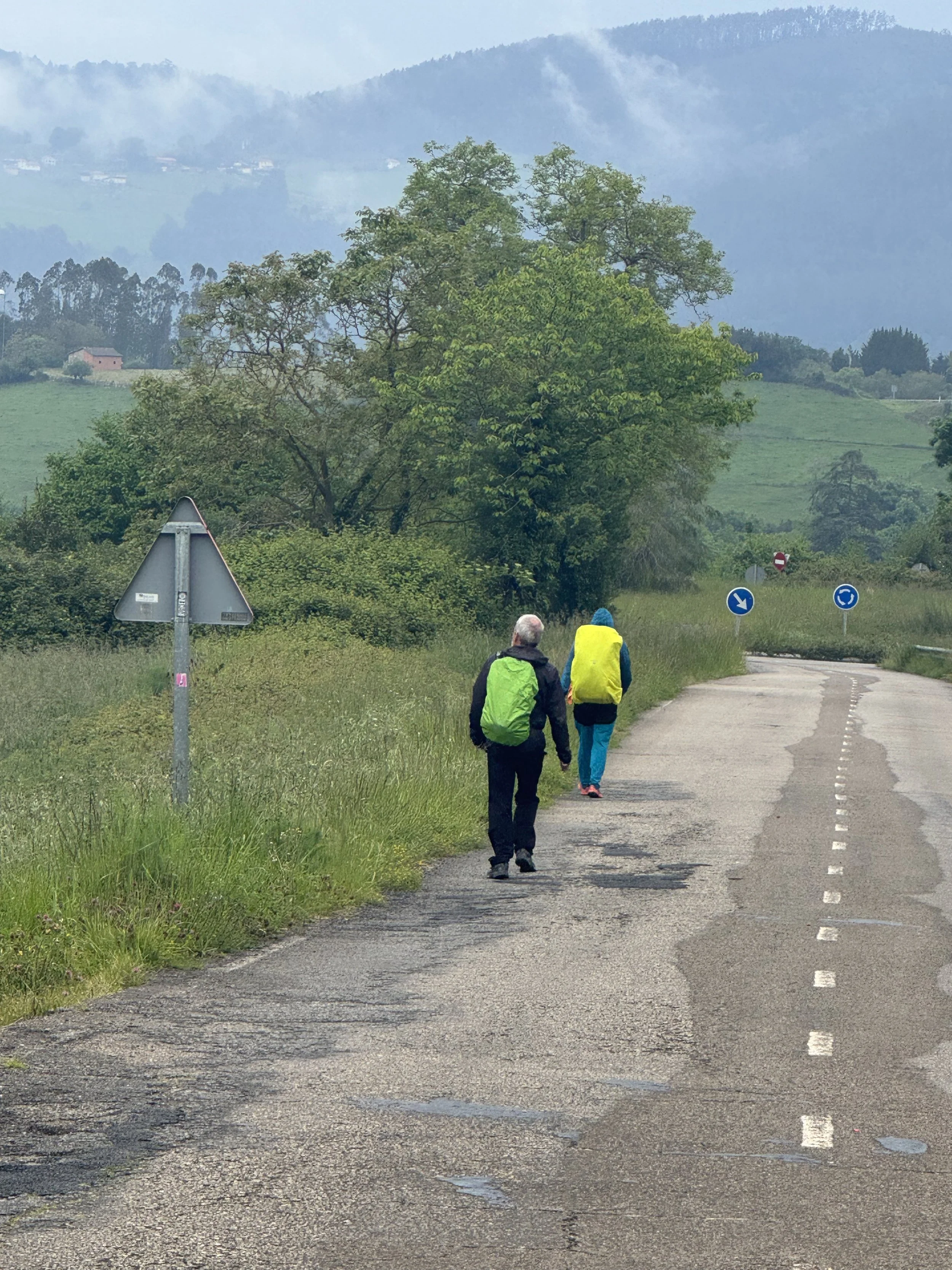 I started the day with a climb. I had an early breakfast and did not see any of the folks from yesterday. It rained just enough to require digging out the rain gear. Oh well. I’m kinda used to it now. I don’t get mad or angry about it. What’s the point? Being angry and mad hurts one person most. Me. I can talk about it. I can wish it were sunny and dry but I have no desire to get pissed about it. I should try that strategy in other contexts. Early in the day’s walk, I encountered a group of Spaniards. They were having a great time laughing and laughing and laughing. I was alone with my thoughts. The two atmospheres collided. At times, I used to be annoyed by someone laughing because it distracted me from what I was doing or thinking. I could have gotten annoyed today for sure. As I walked the Camino I thought- if someone is laughing they must be happy and joyous. Should I be annoyed by happiness and joy? What a crazy thought really. If I don’t make it about me, I can actually mute the feeling of annoyance and enjoy the laughing. Weird thing to write about I know but it’s a Camino moment I want to remember. It will be good for me.